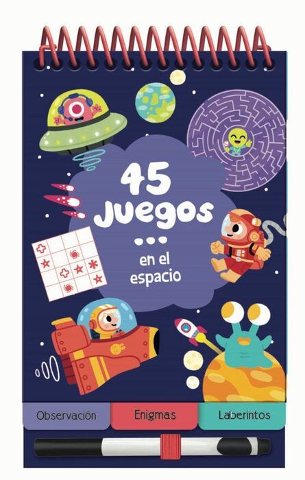 45 juegos es una nueva colección de librojuegos en un práctico formato pequeño con un rotulador borrable ¡para divertirse por todas partes y todo el tiempo! 45 juegos alrededor de un momento o situación (de vacaciones, de viaje, mientras esperas