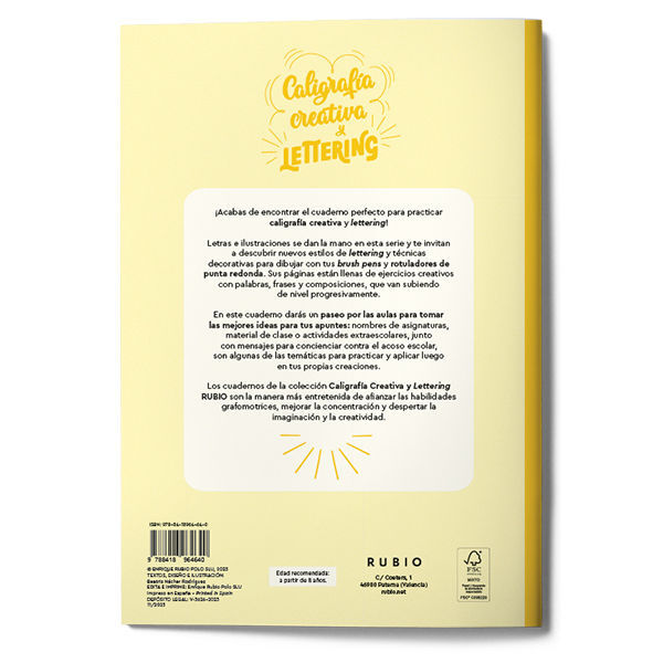Los cuadernos de la colección Caligrafía Creativa y Lettering RUBIO son la manera más entretenida de afianzar las habilidades grafomotrices, mejorar la concentración y despertar la imaginación y la creatividad.