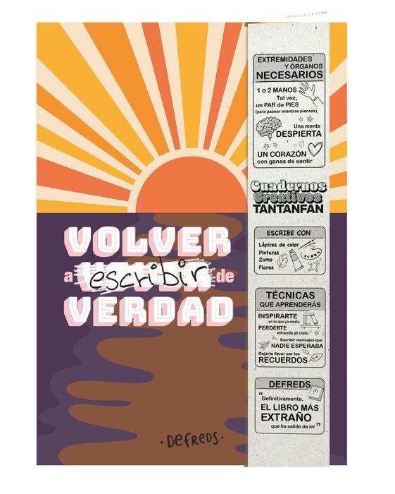 A medio camino entre la poesía, el diario y el juego, este libro es una invitación a escribir sin miedo, sin filtro y sin pantallas. Y a hacerlo desde el alma: con rabia, con alegría, con nostalgia, con boli, con flores, letra fea o, incluso, ¡con grapas! El propio Defreds lo ha creado como una forma de volver al papel, a lo táctil, a lo que nos hace parar y sentir.