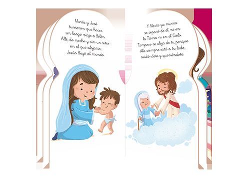 Este original libro, con silueta troquelada, contiene una breve presentación sobre la Virgen María, la madre de Jesús, destacando su cercanía y su ternura y contando de manera muy sencilla los momentos fundamentales de su vida –la anunciación, el nacimiento de Jesús, su asunción…–. El libro termina con la oración del Avemaría, para que los más pequeños puedan también rezar dirigiéndose a ella.