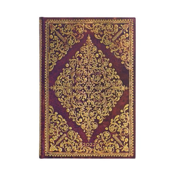 Inspirada en la encuadernación de un libro italiano del siglo XVII, Viola presenta un motivo floral y un motivo de roseta. Las encuadernaciones de libros de este período se caracterizan por la riqueza ornamental de la zona central de la cubierta. Con zarcillos amplios en forma de diamante centralizado, este es un ejemplo clásico del estilo de encuadernación de la época.