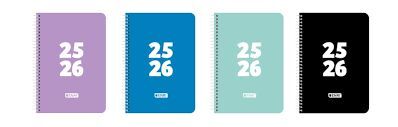 Características exteriores:Agendas forradas con acabado soft.Cierre con goma extra gruesa.Esquinas redondeadas.Encuadernación con espiral de PVC.Idioma: Cuatrilingüe.Formatos:A6 12×17 cm, 1 día/páginaCaracterísticas interiores:Diseños interiores más dinámicos y atractivos.Con Papel certificado FSC®.Separatas diferentes para cada mes.Fechas de exámenes.Calendario escolar.Páginas...