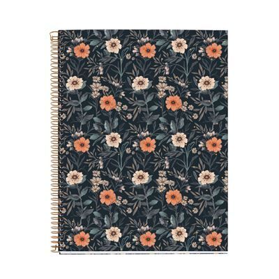 NOTEBOOK 4 A4 (210 x 297 mm). Cubiertas de cartón rígido plastificado mate. Espiral cobre. Detalle en stamping cobre. Taladros: A4: 4. 100 hojas microperforadas. Rayado: cuadrícula. Papel extraopaco de 70 g/m2 con certificación FSC.