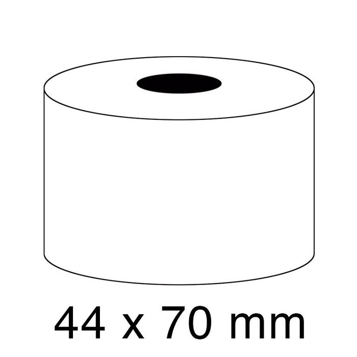 Bobinas de papel para sumadora. Papel Offset blanco. Distintas medidas para las diferentes marcas de máquinas. Mandril 12 mm. Ancho 44 mm. Diametro 70 mm. Paquete de 10 rollos.