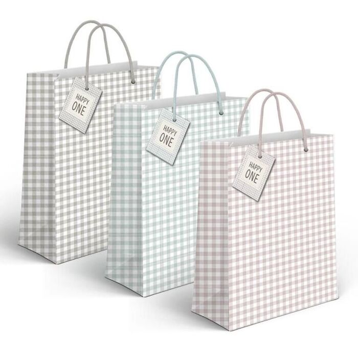 Bolsa de Papel 3 Modelos Vichy. Medidas: 32 x 10 x 26cm