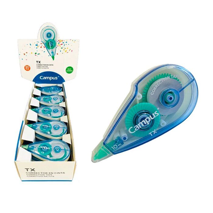 El nuevo corrector en cinta Campus TX combina un diseño práctico con mayor capacidad, convirtiéndose en el aliado perfecto para largas jornadas de trabajo o estudio.Su mecanismo de aplicación suave garantiza un resultado uniforme desde la primera hasta la última corrección, sin cortes ni interrupciones. Con un ancho de cinta de 5 mm y una longitud de 10 m, ofrece la medida ideal para cubrir con eficacia y durabilidad.Compacto, cómodo y fiable, el Campus TX está pensado para acompañarte en tu día a día, asegurando correcciones limpias y rápidas en todo momento.