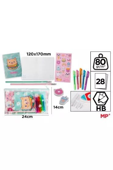 Estuche infantil con divertido motivo de animales de tacto suave. Con asa para transporte y base de poliéster. Forro interior a juego. Con tiradores en las cremalleras en forma de animal. Dimensiones: 23,5x12x3,5. ...