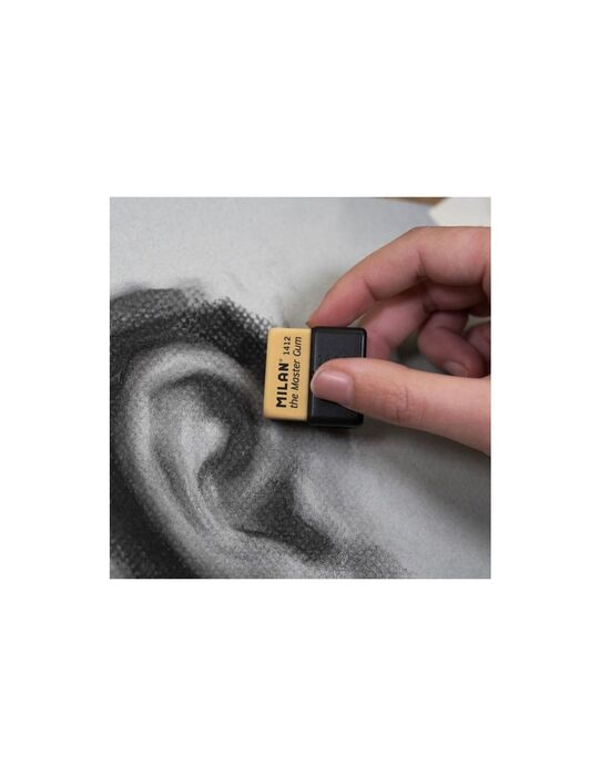 La Goma de Borrar Milan Master Gum es una herramienta imprescindible para artistas, estudiantes de bellas artes y profesionales de la restauración. Fabricada con caucho sintético tipo miga de pan, ofrece una gran capacidad de absorción que permite borrar sin esfuerzo, sin necesidad de aplicar presión sobre el papel.