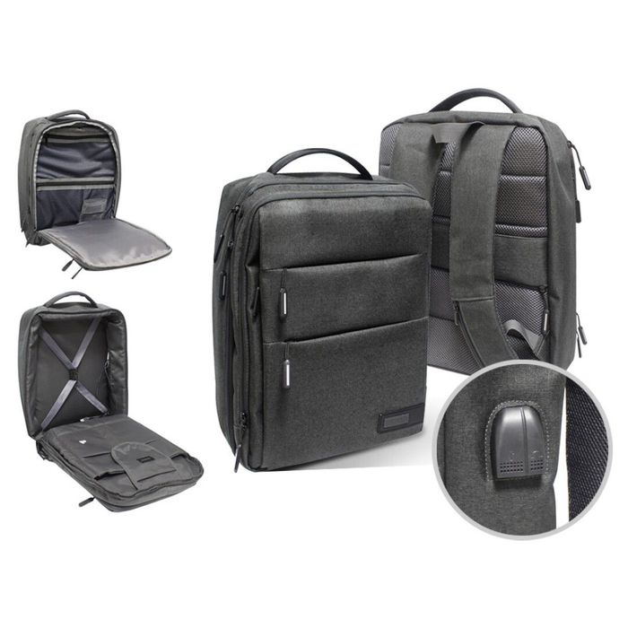 Mochila con 3 compartimentos impermeable. Espalda ergonómica de rejilla transpirable. Protección añadida en las cremalleras. Base acolchada con protector de plástico de refuerzo. Hombreras acolchadas y reforzadas. Incluye identificador y organizador en su interior. Bolsillo en el lateral exterior. Material impermeable. Capacidad para portátil 15,6''. Fabricada con material libr...