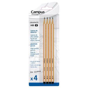Blister con colgador de 4 lápices Campus. Grafito muy resistente. Graduacion HB-2. Cuerpo Hexagonal. De fácil afilado.