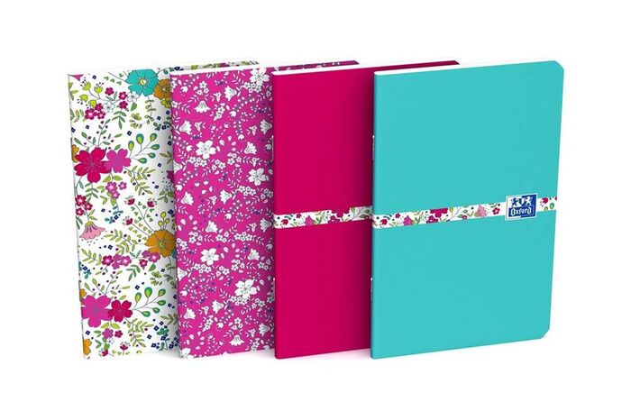 Una colección de prácticos cuadernos de bolsillo con varios motivos florales Esquinas redondeadas Lomo cosido Reglas rayadas Papel Optik Paper blanco como la nieve y perfectamente liso con un gramaje de 90 g/m2