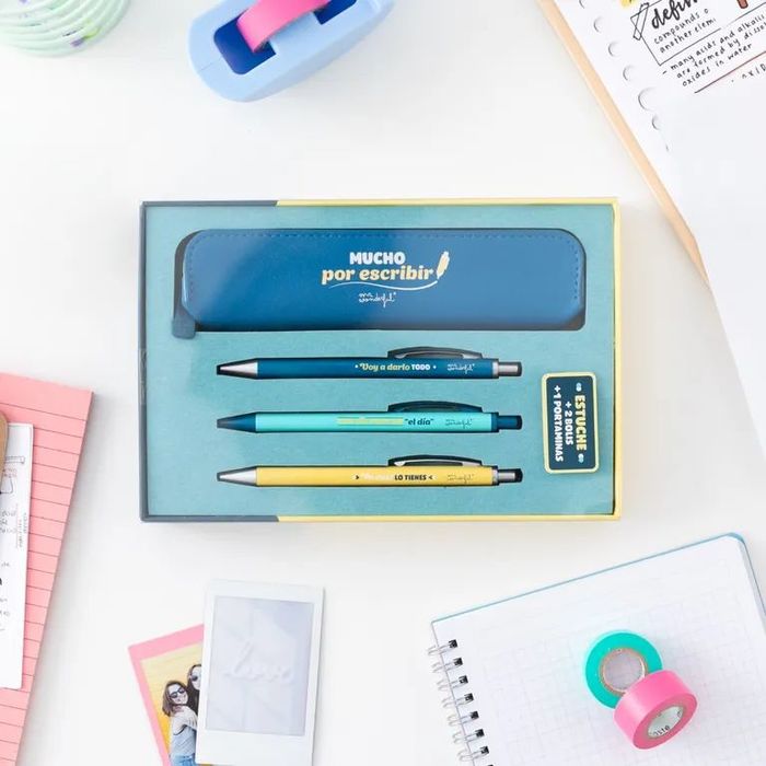 ¡todo mal! Encontrar un bolígrafo o un lápiz se convierte en una prueba a contrarreloj digna del escape room más complicado. Para ahorrarte sudores, hemos creado este set de escritura de Mr. Wonderful, que cuenta con los utensilios necesarios para que escribas tu triunfo con todas las letras. Está formado por un estuche que derrocha estilazo y que alberga en su interior un bolígrafo azul, uno negro y un portaminas recargable. Vaya, lo esencial para petarlo en la universidad, en la oficina o resolviendo un haiku imposible.