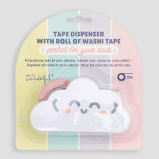 Portacelo realizado en plástico PET y con forma de nube Wonder. Lleva incluido un rollo de celo estampado, con rayitas en tonos pastel, de 1,8 cm de ancho. Medidas del portacelo: 11 c 6,5 x 4,5 cm.