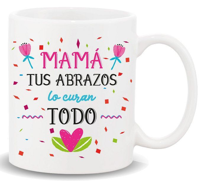 TAZA CON MENSAJE MAMA TUS ABRAZOS